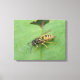 Dieser phantastische Leinenprint zeigt ein detailliertes Foto eines prächtigen schwarz-gelb gestreiften Flügels, der auf einem Blatt ruht. Das Foto wurde mit Makrofotografie für ein fantastisch detailliertes und scharfes nah-up Bild aufgenommen.