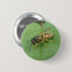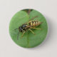 Dieser schöne Knopf zeigt ein detailliertes Foto eines herrlichen schwarz-gelb gestreiften Hoverfly auf einem Blatt. Das Foto wurde mit Makrofotografie für ein fantastisch detailliertes und scharfes nah-up Bild aufgenommen.