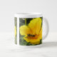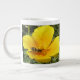 Diese phantastische Tasse zeigt ein detailliertes Foto eines wunderschönen, schwarz-gelb gestreiften Schweblings, der auf einem gelben kalifornischen Mohn herumkrabbelt und nach Nektar sucht.