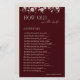 Complete your bridal shower game set with this elegant How Old Was the Bride Answer Key. Designed to perfectly match the Bride in Bloom bridal shower collection, this burgundy floral answer card provides the correct ages for each milestone in the bride’s journey. Ideal for hosts, this printable-style game card adds organization and charm to any bridal shower celebration. Features a romantic floral design, easy-to-read layout, and coordinates beautifully with matching bridal shower games. Perfect for modern, classy, and floral bridal showers.“Matching answer key included for the host”