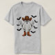 Yeehaw! This spooky yet friendly ghost is ready for a Halloween rodeo! Our unique design features a cute cartoon ghost wearing a classic Cowboy Hat and authentic Western Boots, flashing the peace sign while surrounded by bats.