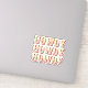 Cowboy "Howdy Howdy Howdy Howdy" Textdesign mit gestreiften Buchstaben in den Farben Gelb, Rot und Beige
