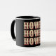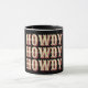 Cowboy "Howdy Howdy Howdy Howdy" Textdesign mit gestreiften Buchstaben in den Farben Gelb, Rot und Beige
