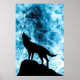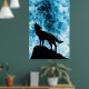 Howling Winter Wolf schneeblauer Rauch Abstrakt Poster