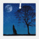 Ein zeichn eines Wolfs, der auf dem Mond heult und im Hintergrund einen Baum hat.