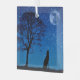 Ein zeichn eines Wolfs, der auf dem Mond heult und im Hintergrund einen Baum hat.