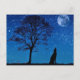 Ein zeichn einer schwarzen Wolf-Silhouette, die auf dem Mond heult und im Hintergrund einen Baum hat.