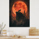 Howling Wolf Poster mit Blütenmond & Dunklem Wald