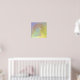 Poster mit Wolf, der auf dem Mond heult. Details zur Illustration: Blumenmandala und Ast, Mondstein Farbe Fell und gelb, grün, violett Farben.