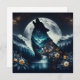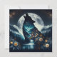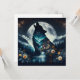Bild in einem Bild. Ein Wolf, der auf dem Mond heult, mit einem floralen und bergischen Wasserfall-Hintergrund.