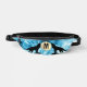 Howling Wolf Vollmond blauer schwarzer Custom Monogram Fanny Pack. Cooles Mode-Accessoire - Tasche für ihn. Abstrakter geometrischer Winter schneeblau-weißer Rauch mit schwarzer Wolfskulptur-Silhouette.