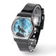 Howling Wolf Winter schneeblauer Rauch Abstrakt Armbanduhr