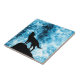 Abstrakter geometrischer Winter schneeblau-weißer Rauch mit schwarzer Wolfskulptur-Silhouette.