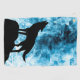 Abstrakter geometrischer Winter schneeblau-weißer Rauch mit schwarzer Wolfskulptur-Silhouette.