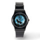 Howling Wolf Winter schneeblauer Rauch Abstrakte Armbanduhr. Coole Männer Accessoires mit Abstrakt geometrisch schneebedeckten Silhouetten in Blau und Weiß und schwarzem Wolf. Monogram Personalize mit Ihrem benutzerdefinierten Initial und Namen.