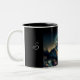 Schöner, majestätischer heulender Wolf in einem Meer von Bergen, Sternen und Kiefern. Die perfekte Kaffeemaschine für Sie - der Wolfsmann. Personalisieren Sie diese, indem Sie Ihre Initialen hinzufügen.