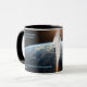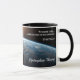 This mug shows the pre-Flood planet earth with splitting crust and fountains of great deep beginning to burst forth. Also has Walt Brown quote ("sounds crazy until you look at the evidence") and "Hydroplate Theory" title.