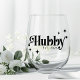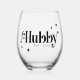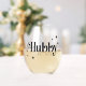 Stemose Weingläser mit dem Text "Hubby" in einem eleganten Retro-Display Schriftart zusammen mit Retrostern und dem Namen oder Jahr unten. Wifey-Version finden Sie hier zazzle.com/256760072233427826
