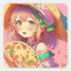 Hübsch Anime Girl Holding a Pizza Quadratischer Aufkleber