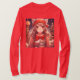 Niedliches Anime-Girl mit orangefarbenem Kätzchen mit Weihnachtsbeleuchtung Hintergrund Winter Shirt.