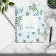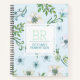 Niedlich blaues, grünes und weißes Aquarell-Blumendesign mit Ihren Initialen und Namen personalisiert auf dem Cover.