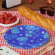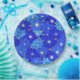 Hübsches blaues Farbmuster mit Verzierung von winzigen gelben Blumen.