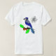 Ein hübscher blauer Jay-Vogel auf einem Eichenarm. Das Vogelbild ist von hinten mit einem Fokus auf die blaue Feder des Schwanzes. Das Design hat den Vogel nach dem verlassen, ein Spiegelbild des Vogels wird in der oberen rechten ein Graustufen Wasserzeichen getan, ein idealer Ort für ein Monogramm. Der Eichenzweig hat zwei grüne Eichen-Blätter und zwei braune Eichen.