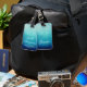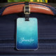 Gepäckanhänger mit einem hübsch blauen Halbmandala-Muster mit einem Hintergrundgefälle Farbe von hellblauem Meer, die in eine dunkelmarineblau übergeht. Ruhe und Gelassenheit.