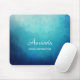 Personalisiertes Mauspad mit einem hübsch blauen Halbmandala-Muster mit einer Hintergrundfarbe von hellblau, die in ein dunkelmarineblau übergeht. Ruhe und Gelassenheit.