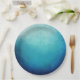 Papier Teller mit einem hübschen blauen Halbmandala Muster mit einem Hintergrundgefälle Farbe von hellblauem Meer, die in eine dunkelmarineblau übergeht. Ruhe und Gelassenheit.