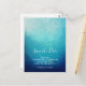 Save the Date Postkarte mit einem hübsch blauen Halbmandala-Muster mit einem Hintergrund-Farbverlauf von hellblau, der in ein dunkelmarineblau übergeht. Ruhe und Gelassenheit.