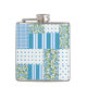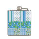 Ein hübscher Hip Flask mit Imitaten im Landstil Patchwork aus Blumen-, Polka-Dot-, Streifen- und Karo-Gingham-Mustern in Blau, Grün und Weiß: Teil der Posh & Painterly 'Morning Glory' Kollektion. Dieses Muster passt in alle Flasengrößen.