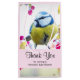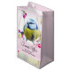 Vielen Dank, dass Sie eine Geschenktasche mit einem phantastischen Foto des niedlichsten kleinen Vogels auf einem Zweig, bedeckt mit rosa Blüten und grünen Blätter. Der Vogel hat einen blauen Kopf und einen gelben Körper mit einem sehr süßen Gesicht. Schön.