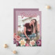 Einzigartige und trendige Gratulationen Graduieren Ankündigung und Feiern Party Einladung-Karte gerahmt mit einem schönen farbenfrohen Aquarellfeder und Blumenkranz im Sommer auf einem klassischen pastellblütigen violetten taupe rosa Hintergrund. Mit Raum zum Anpassen oder Personalisieren mit einem Foto, den Namen des Absolventen, Klasse Abschluss Jahr, High School, künftige Uni oder Universitätsname, und feiern Party-Event-Informationen. Lass der Familie, Freunden und Nachbarn, dass es einen glücklichen Absolventen gibt, der bereit ist, die Welt zu erobern, und laden Sie alle ein, das glückliche Ereignis mit Ihnen zu feiern!