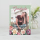 Einzigartige und trendige Gratulationen Graduieren Ankündigung und Feiern Party Einladung-Karte gerahmt mit einem schönen farbenfrohen Aquarellfeder und Blumenkranz im Sommer auf einem klassischen pastellblütigen violetten taupe rosa Hintergrund. Mit Raum zum Anpassen oder Personalisieren mit einem Foto, den Namen des Absolventen, Klasse Abschluss Jahr, High School, künftige Uni oder Universitätsname, und feiern Party-Event-Informationen. Lass der Familie, Freunden und Nachbarn, dass es einen glücklichen Absolventen gibt, der bereit ist, die Welt zu erobern, und laden Sie alle ein, das glückliche Ereignis mit Ihnen zu feiern!