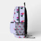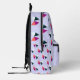 Ein sehr hübscher Rucksack in heller pastellfarbener Lilie, mit einem geometrischen Muster von Bögen. Der Rucksack eignet sich ideal für Schulklassen, Ausflüge, Sport- und Kinderclubs. Er ist mit einem Namen auf der Vordertasche personalisiert, der in schwarzer Typografie dargestellt ist.