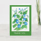 Eine hübsche Blumenkarte mit hellblauen Morning Glory-Blume auf weißem Hintergrund mit passender grüner Grenze. Das Design ist eine handbemalte Wasserfarbe von Judy Adamson und Sie können die innere Botschaft personalisieren.