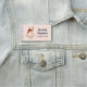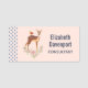 Namensschild mit einer schönen braunen Dose mit weißen Flecken auf ihrem Fell. Ein niedlicher Vogel sitzt auf dem Rücken des Hirsches. Eine elegante Blume bestehend aus Aquarellfarben-Rose und hellgrünen Blätter unter ihren Füßen. Ein blauer Polka-Punkt-Rand mit pfirsichfarbenem Hintergrund.