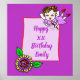 Personalisieren Sie dieses Plakat, indem Sie ihm den Namen des Geburtstagsmädchens im personalisierten Bereich hinzufügen. Niedlich braun haarige Fairy Girl Happy Geburtstag mit hellen lila , Kalkgrün, gelb. Whimsical Folk Art Stil Poster.