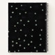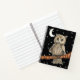 Dieses Wendelheft ist schwarz mit weißen Sternen und eine braune hübsche Eule, die auf einem Baumzweig sitzt und eine blaue Halskette mit einem weißen Halbmond über ihr trägt.