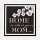 Zuhause ist, wo Ihre Mama ist. Eine wunderschöne Stimmung für Ihre liebende Mutter, mit hübschen rosa und weiß blühenden Kirschblüten auf schwarzem Hintergrund. Macht ein wunderbares Geschenk für den Muttertag.