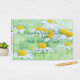 Freuen Sie sich auf freundliche, weiße und gelbe Gänseblümchen in einem grünen Feld für ein Gästebuch für Ihre Hochzeit. Ein eleganter Skript-Schriftart in dunkler Minze listet die vollständigen Namen des Ehepaares auf, die für das Hochzeitstag und den Ort der Hochzeit einen im Kontrast stehenden kleineren Schriftart verwenden. Denken Sie daran, Ihre Informationen auf der Wirbelsäule durch ein wirklich einzigartiges Gästebuch für Ihre Veranstaltung zu ersetzen