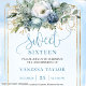 Hübsch Dusty Blue White Gold Blume Sweet 16 Einladung