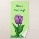 Hübsches Badetuch-Set mit Blumenmotiv. Das größere Badetuch hat eine hübsche lila Tulpe Blume mit dem Wortlaut, Haben Sie einen großen Tag in roter Schrift geschrieben. Das mittlere Handtuch hat eine goldgelbe Blume mit grünen Blätter und die Formulierung "Enjoy Nature's Beauty in white script". Das Wash Tuch hat drei hübsche Blume in goldgelb, blau und lila mit dem Wortlaut, Liebe einfach in grün geschrieben. Halten Sie sich an einem Handtuchhalter im Badezimmer, indem Sie das große Badetuch arrangieren, das Handtuch in der Mitte mit dem Waschlappen. Im Gegensatz zum Artikelvorschussfenster müssen Sie die links und rechte Seite des Badetüchers zurückfalten und das Handtuch für eine schönere Dekorationsform auf der Rute mit dem Waschlappen auf der oberen, komplett flach platzierten Ebene verwenden. Schönes, dreiteiliges Set für die Frühlings- und Sommermonate oder zu jeder Zeit will man, um die Wärme und Schönheit der Blume der Natur zu bringen. Original Handgemalte grafische Kunstwerke von TamiraZDesign. Besuchen Sie meinen Shop für weitere einzigartige Artikel unter: www.zazzle.com/tamirazdesigns