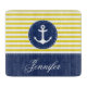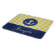 Schönes Schneidbrett mit nautischer Ankerkonstruktion, gelb & blau Streifen und individuellem Text.