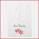 Elegantes weißes Küchentuch mit GIVE THANKS in grüner Schrift mit einer korallenfarbenen Blüte. Schöne Ergänzung zu Ihrer Wohngestaltung...mit einer Nachricht.