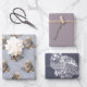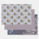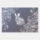 "Hübsch in Lila Ostergrössen" Packpapier Blätter sind 3 in einem Set, die erste ist ein Vintages, weißes Hasen umgeben von blauen und violetten Blumen auf einem leicht bläulich grauen/grauen mit kleinen weißen Blume im Hintergrund. Die zweite ist eine solide, helle Pflaumenfarbe, und die dritte ist eine blumenweiße, sonnige Umhüllung, umgeben von weißen Blumen auf einem ombre blauen bis lila Hintergrund.