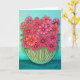 Ein stilvolles, lebendiges Gemälde mit Blumenmotiven in vielen Rosatönen in einer Glasvase auf türkisfarbenem Hintergrund auf einer Grußkarte von Lisa Lorenz