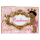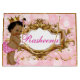 Eine hübsche afrikanische Prinzessin mit goldener Krone, rosafarbener Kruffeldecke und niedlich rosa Hausschuhe auf elegantem goldenen Rahmen mit hellrosa Hintergrund. Gold schimmert an den Seiten der Geschenktasche. Passen Sie den gewünschten Text an.