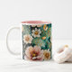 Die zarten, rosafarbenen Blume harmonieren mit dem rosa Interieur der Tasse. Lässige Eleganz in ihrer besten Form.